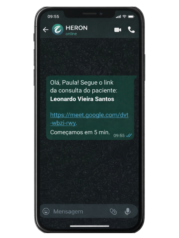 Envio automático do link da consulta online 5 minutos antes da sessão